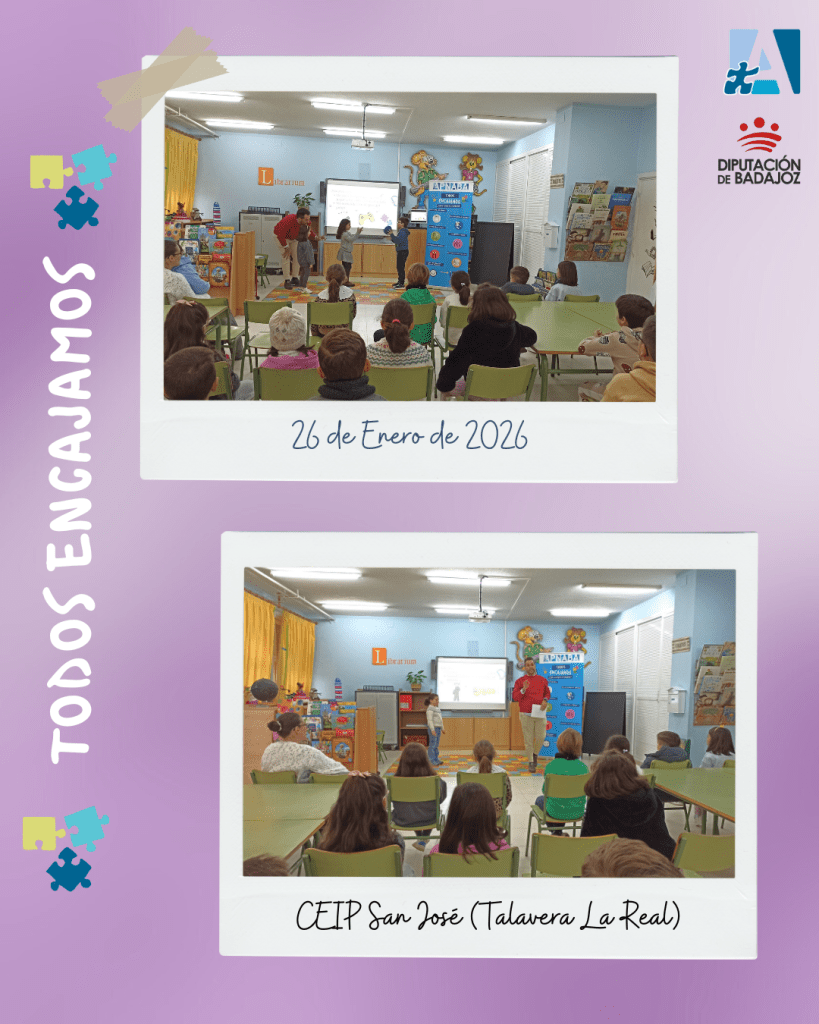 El pasado 26 de enero, Jorge estuvo en el CEIP «San José» de Talavera la Real compartiendo con el alumnado de 1º y 2º de primaria una charla sobre el Trastorno del Espectro del Autismo.