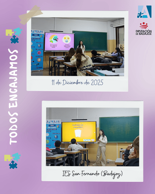 El 11 de diciembre, Andrea visitó el IES “San Fernando” de Badajoz para encontrarse con el alumnado de 2º de ESO y dialogar sobre el Trastorno del Espectro del Autismo.
