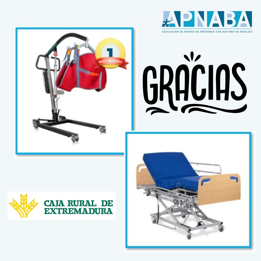 Desde APNABA queremos agradecer a la Caja Rural de Extremadura, la financiación para equipar nuestro Servicio de Residencia de Apoyo Extenso (RAE) con dos camas articuladas y una grúa móvil.