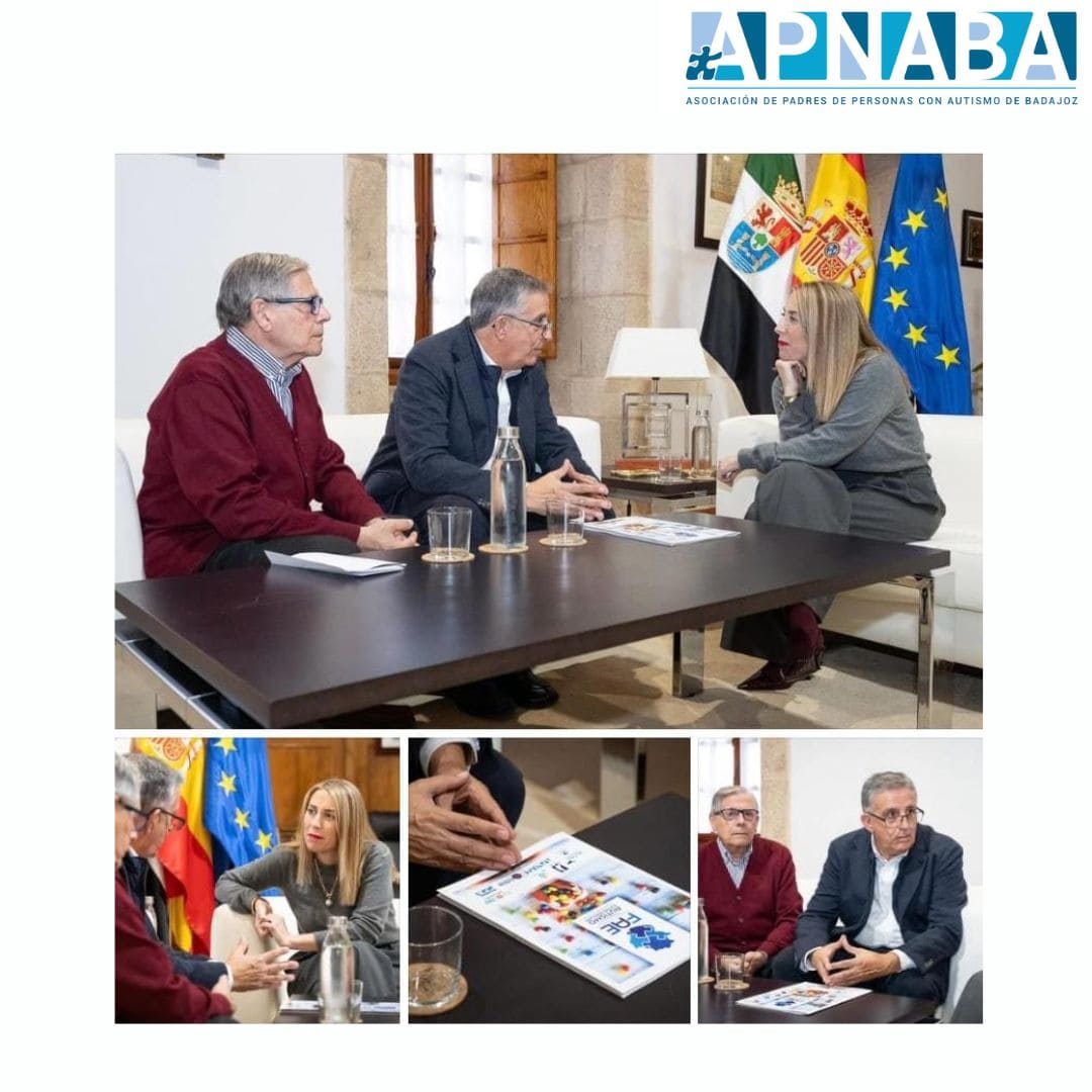 Reunión APNABA y Federación Autismo Extremadura con la presidenta de Extremadura Maria Guardiola sobre asuntos de interés relacionados con el autismo.
