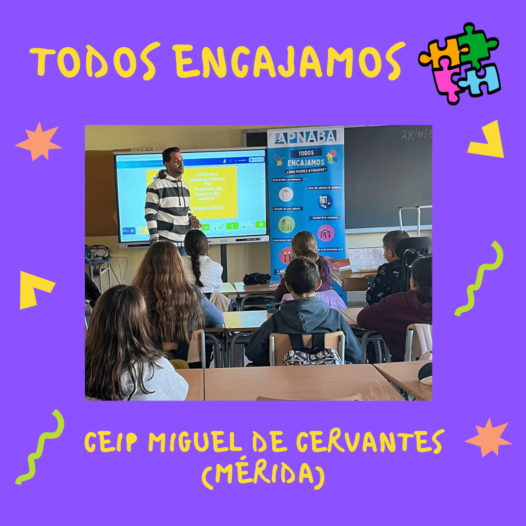 📍Nuestro compañero Jorge ha estado en el CEIP MIGUEL DE CERVANTES de MÉRIDA, para impartir una charla de sensibilización y concienciación sobre el TEA.