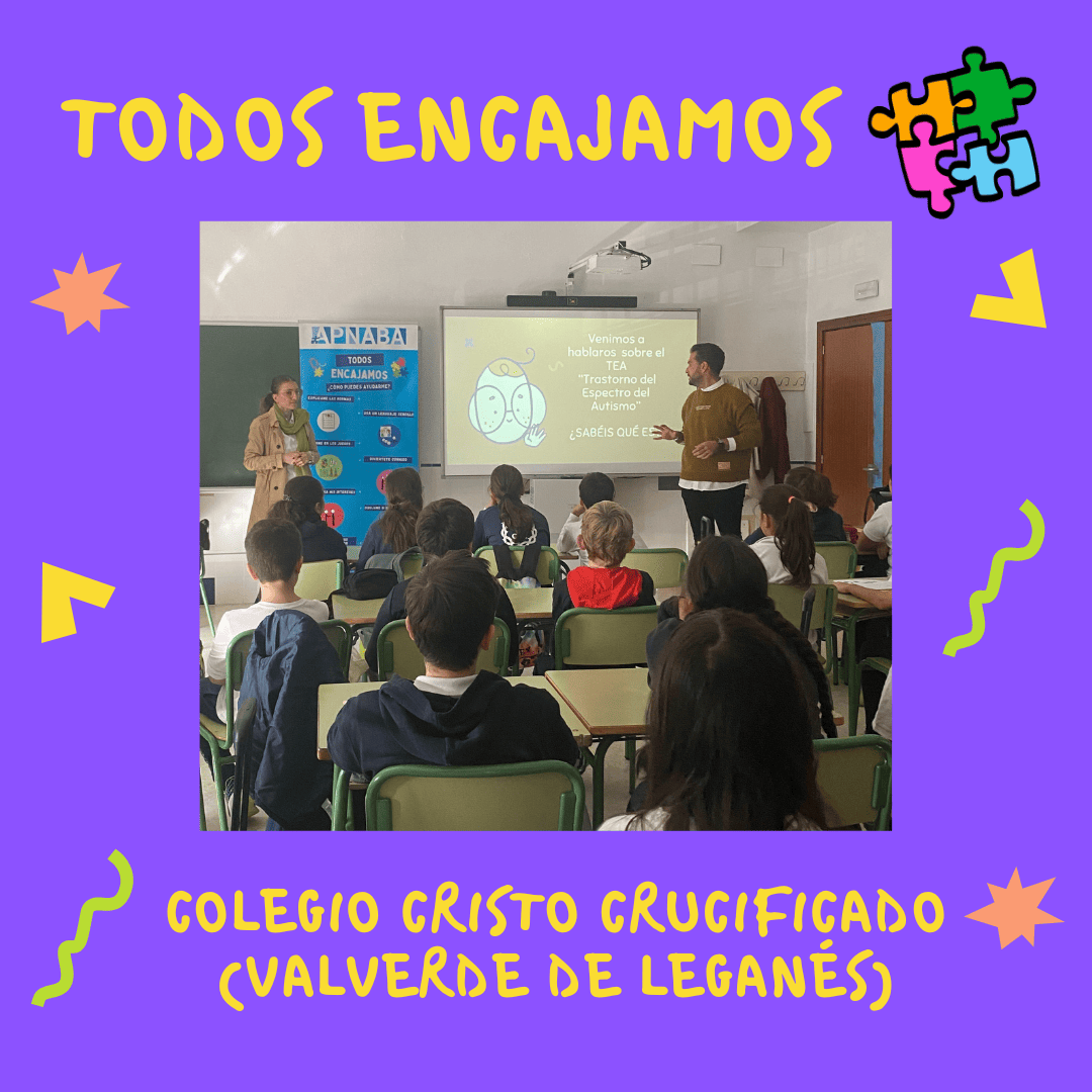 📍Hoy nuestros compañeros Jorge y Rocío han estado en el Colegio Cristo Crucificado, de Valverde de Leganés, para impartir una charla de sensibilización y concienciación sobre el TEA.
